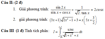 II/ PHẦN RIÊNG (thí sinh chỉ được làm một trong hai phần (A hoặc B))