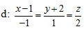 . Viết phương trình đường thẳng f đi qua trung điểm của AB, cắt d và song song với (P): x + y – 2z = 0.