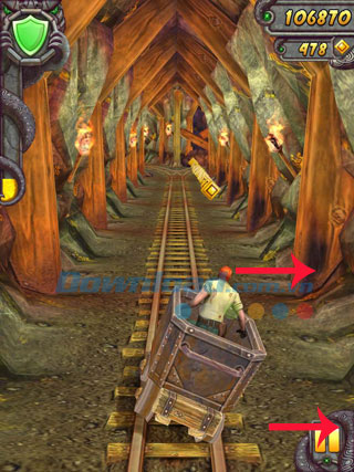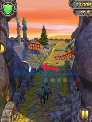 Ở phiên bản Temple Run 2 này, bạn phải vượt qua 2 chướng ngại vật đứng liền kề nhau trên đường chạy. Tuy nhiên, yếu tố may mắn cũng sẽ giúp bạn hoàn thành thao tác điều khiển tốt hơn. Lý do vì 2 chướng ngại vật này có thể đứng sát cạnh nhau, khi đó bạn chỉ cần thực hiện cú nhảy mạnh và chỉ thả tay ra khi thấy có thể hạ cánh an toàn.