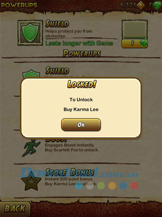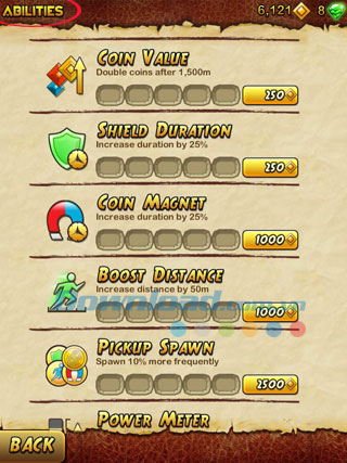 Tiếp đến là nâng cấp nam châm hút vàng để kiếm thật nhiều vàng trên đường chạy vì Temple Run 2 có rất nhiều nhiệm vụ liên quan đến thu thập vàng. Khiên bảo vệ và Boost không thật sự quan trọng nhưng trong một số màn chơi bạn sẽ cần đến chúng để hỗ trợ hoàn thành nhiệm vụ nhanh hơn.