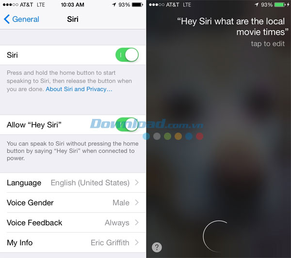 Bạn muốn trò chuyện với trợ lý Siri nhưng không muốn thao tác bằng tay? Khi iPhone đang được cắm với tai nghe, truy cập Settings > General > Siri để kích hoạt chế độ Allow 'Hey Siri', bạn chỉ cần nói Hey Siri để kết nối với dịch vụ hỗ trợ tự động này của iOS.