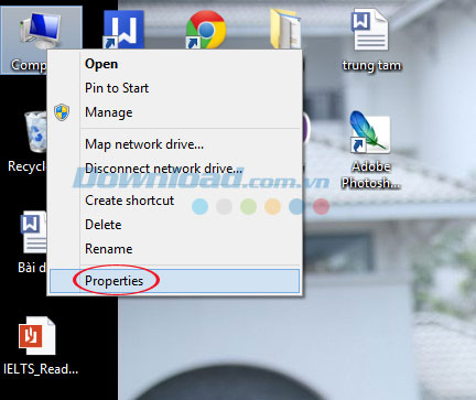 Bước 1: Trước tiên, vui lòng di chuột vào biểu tượng My Computer trên màn hình. Sau đó, nhấp chuột phải vào My Computer và chọn Properties.