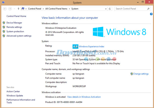 Bước 2: Cửa sổ System sẽ hiện ra và cho phép bạn xem các thông tin cơ bản liên quan đến máy tính của mình. Chẳng hạn như: