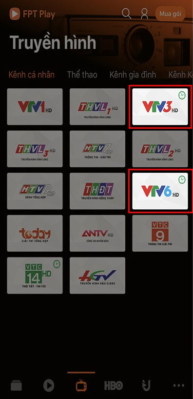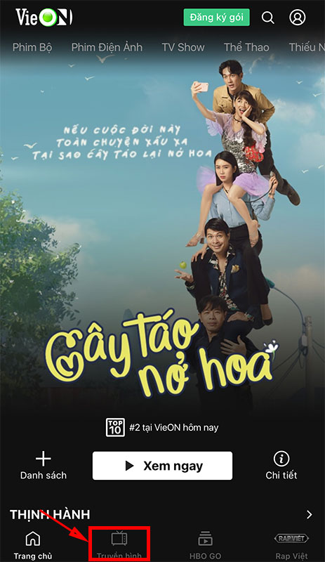 Chọn tiếp tab Truyền hình ở menu dưới màn hình.