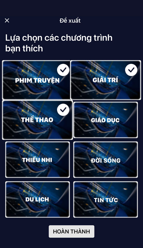 Chọn một loại chương trình yêu thích sau đó nhấn nút Hoàn thành.