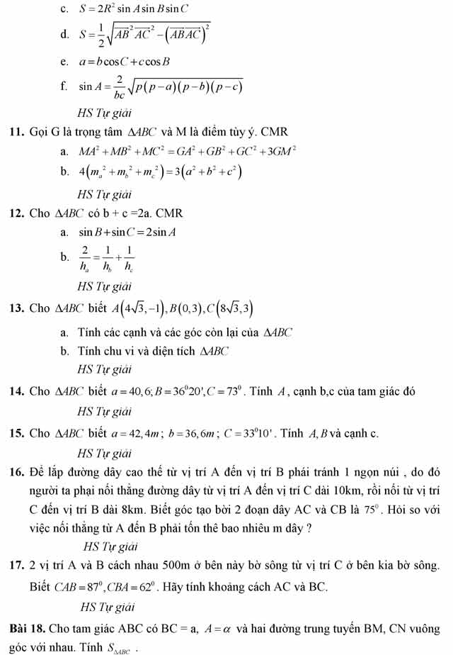 1. Cho ΔABC có a = 12, b = 15, c = 13