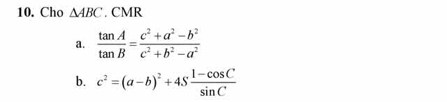 9. Tính góc A của ΔABC có các cạnh a, b, c thỏa hệ thức b(b2 - a2) = c(a2 - c2)