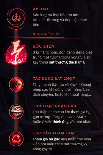 Sau một thời kì làm mưa làm gió của Thu thập hắc ám, thì giờ đây, các game thủ đã trở lại với ngọc Sốc điện. Đây xứng đáng là viên ngọc ổn định và mạnh nhất giành cho các Ganker ở thời điểm hiện tại. Với chỉ 3 đòn đánh hoặc kĩ năng riêng biệt, là bạn đã có thể kích hoạt Sốc điện, gây một lượng sát thương khá lớn lên tướng địch.