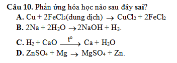 Câu 2. Kim loại sắt không phải ứng được với dung dịch nào sau đây?