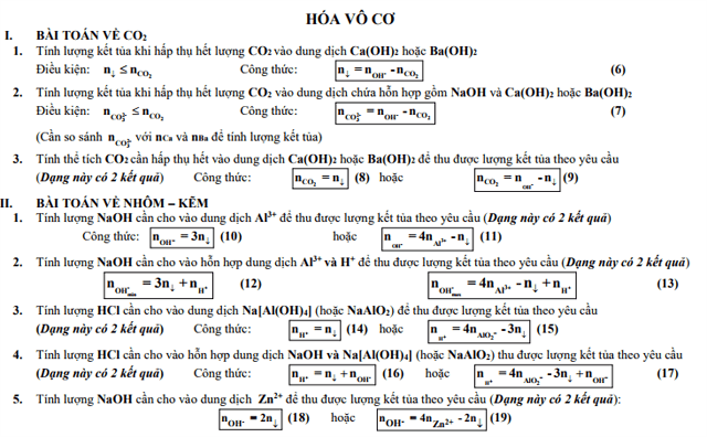58 công thức giải nhanh hóa học Công thức giải nhanh bài tập Hóa cực hay