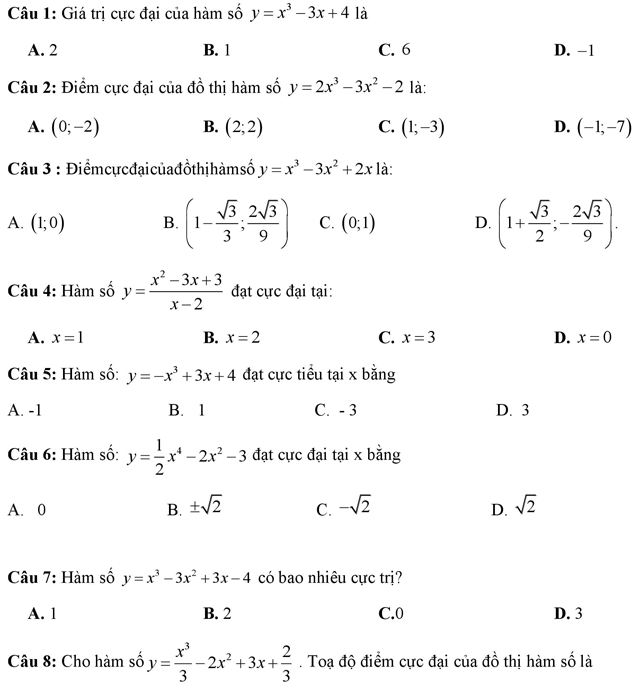 Tìm hiểu thêm »Xin giới thiệu đến quý thầy cô và các bạn học sinh Tuyển tập 747 câu hỏi trắc nghiệm cực trị hàm số được chúng tôi tổng hợp chi tiết, chính xác giúp các bạn học sinh ôn tập lại kiến thức chương trình học lớp 12.