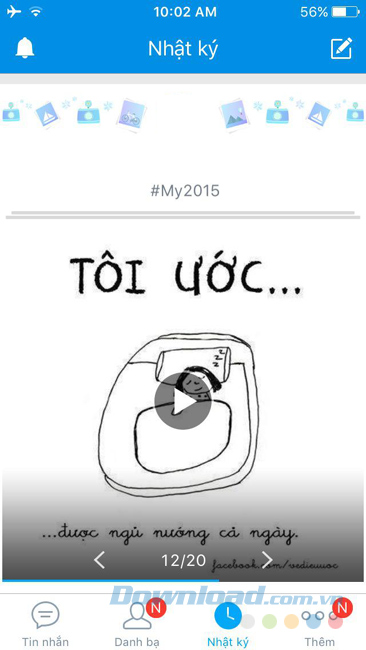 Thực chất, đây là một clip ngắn với 20 bức ảnh được ghép nhạc một cách hoàn hảo. Nhiều người dùng không để ý sẽ thấy khá bất ngờ khi truy cập vào tài khoản Zalo của mình và thấy phần hiển thị của bạn bè có xuất hiện mục My2015 bên dưới, khi chạm vào để xem nó sẽ có giao diện tương tự như hình dưới đây.