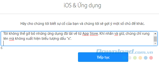 Nhập chi tiết lỗi mà bạn đang gặp phải vào khung trống rồi chọn Tiếp tục.