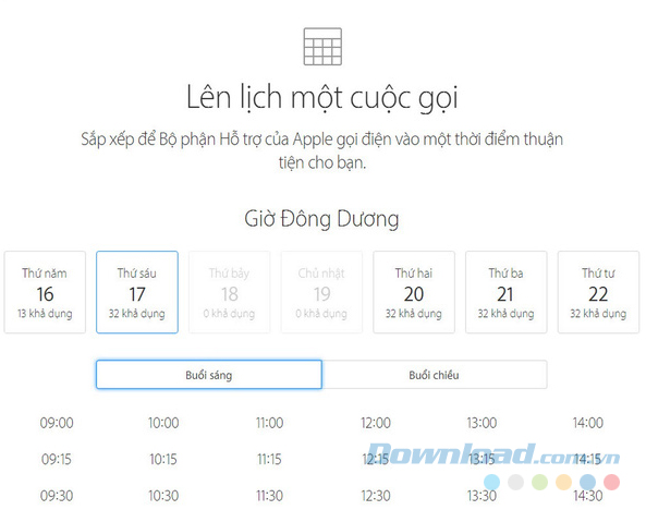 Lịch trình một cuộc gọi: Nếu đang bận và chưa thể nói chuyện trực tiếp với nhân viên chăm sóc, bạn có thể lên lịch hẹn để họ gọi cho bạn vào lúc khác thuận tiện hơn.