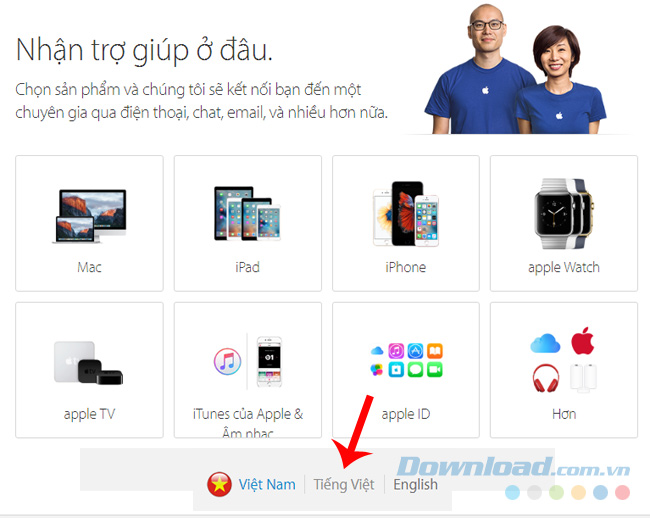 Để có thể sử dụng tổng đài tiếng Việt này của Apple, các bạn có thể truy cập vào địa chỉ này. Giao diện của trang khá thân thiện và dễ sử dụng với các hạng mục được chia tách rất rõ ràng, cụ thể và chi tiết.