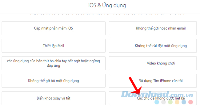 Hãy lựa chọn cho mình một sự cố cụ thể mà thiết bị đang gặp phải, nếu lỗi bạn gặp không có trong mục này, hãy chọn vào "Các chủ đề không được liệt kê".
