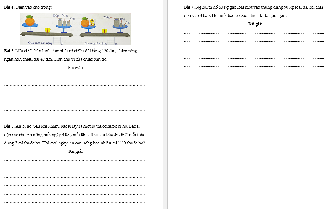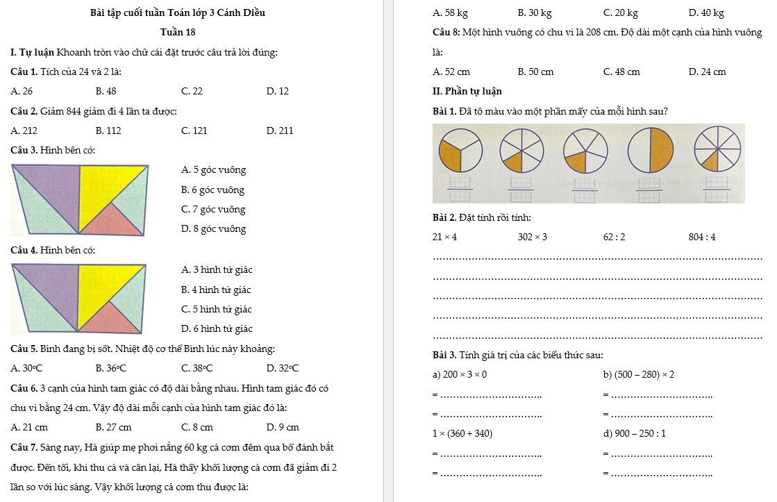 Bài tập cuối tuần lớp 3 môn Toán Cánh Diều - Tuần 18