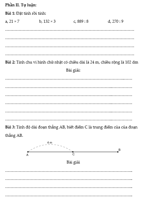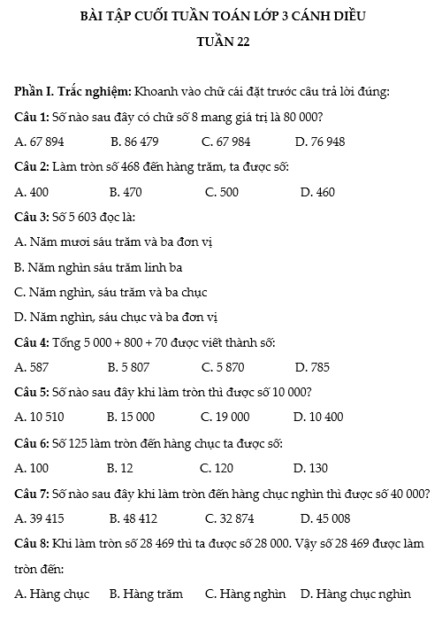 Bài tập cuối tuần lớp 3 môn Toán Cánh Diều - Tuần 22
