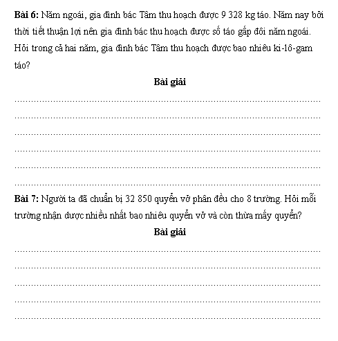Bài 8: Các số đó là: 12 345, 23 456, 45 678