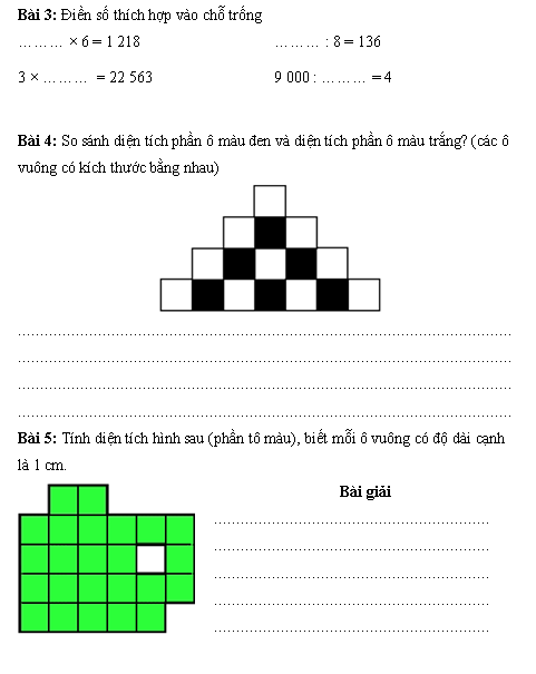 Bài 3: Điền số thích hợp vào chỗ chấm