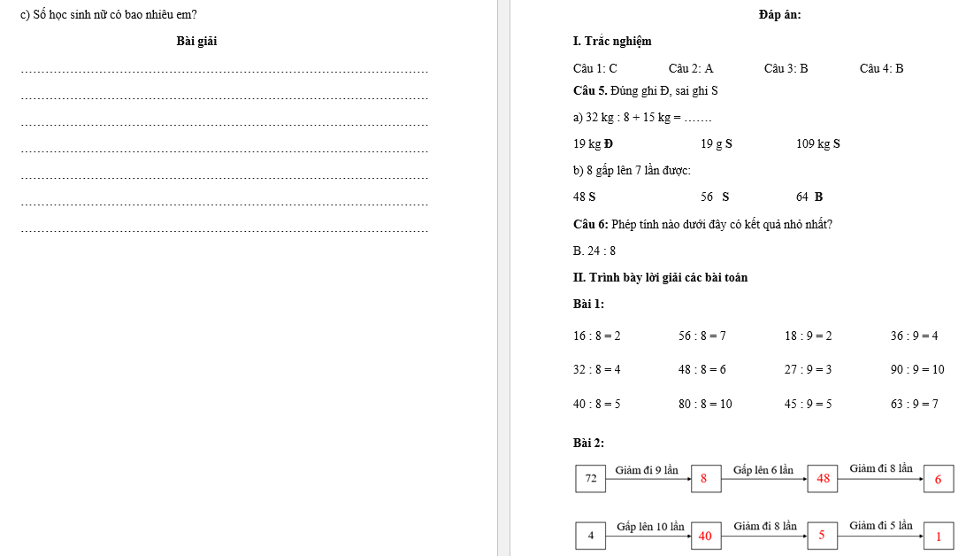 I. Trắc nghiệm: Khoanh vào chữ cái trước câu trả lời đúng hoặc làm theo yêu cầu: