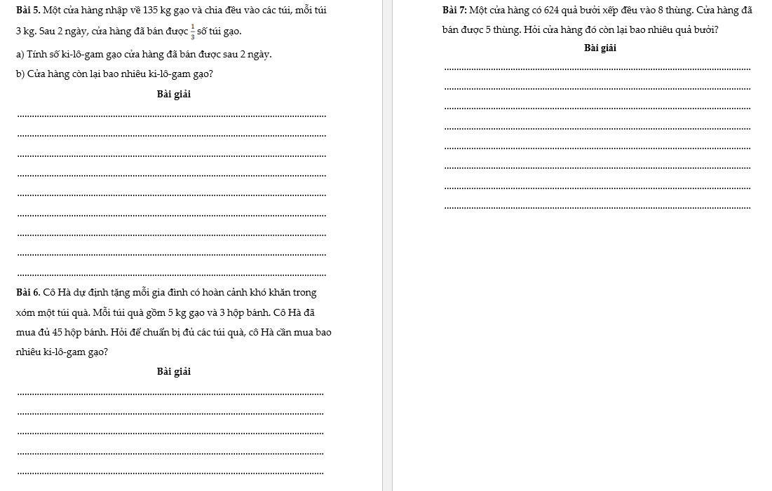 Bài 3: Một gói kẹo nặng 120 g, Một hộp sữa bột nặng 350 g. Hỏi 2 gói kẹo và 2 hộp sữa nặng tất cả bao nhiêu gam?