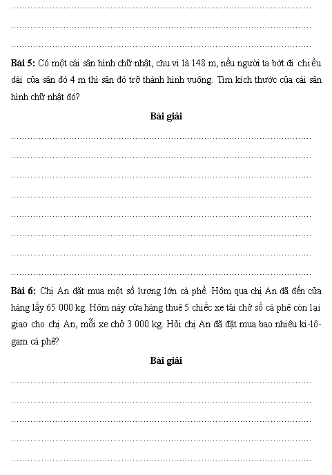 Bài 5. Một của hàng có 34 000 l xăng, cửa hàng nhập thêm về 3 400 l xăng. Hỏi sau khi bán 18 909 l xăng cửa hàng còn lại bao nhiêu lít xăng?
