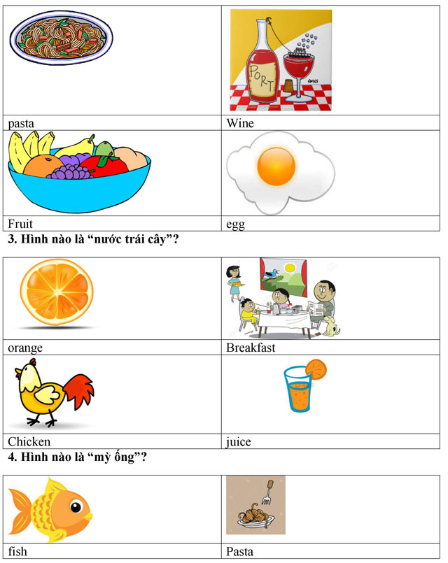 Tìm hiểu thêm »Bài tập tiếng Anh lớp 1 chủ đề món ăn với những hình ảnh minh họa sinh động sẽ giúp các bé dễ học và nhớ từ vựng nhanh hơn. Việc học tiếng Anh bằng hình ảnh đối với những trẻ lớp 1 đã được sử dụng từ rất lâu vì sử dụng hình ảnh giúp kích thích khả năng học hỏi cũng như ghi nhớ của trẻ.