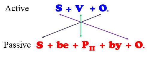 - Lấy O trong câu chủ động làm S cho câu bị động. Lấy S trong câu chủ động làm O và đặt sau By trong câu bị động.
