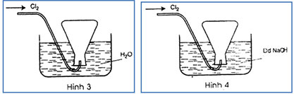 Ví dụ 10: Trong các hình vẽ mô tả cách thu khí clo sau đây, hình vẽ nào mô tả đúng cách thu khí clo trong phòng thí nghiệm? Giải thích?