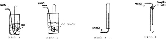 Ví dụ 11: Trong các hình vẽ sau, hình vẽ nào mô tả đúng nhất cách thu khí HCl trong phòng thí nghiệm?