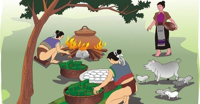 Từ đấy, nước ta chăm nghề trồng trọt, chăn nuôi và có tục ngày Tết làm bánh chưng, bánh giầy.