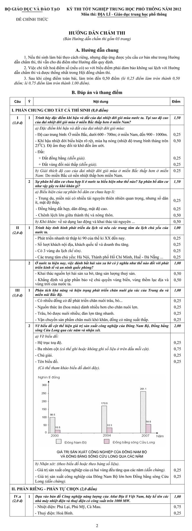Tìm hiểu thêm »Bản hướng dẫn chấm thi tốt nghiệp THPT môn Địa lí hệ Giáo dục trung học phổ thông năm 2012