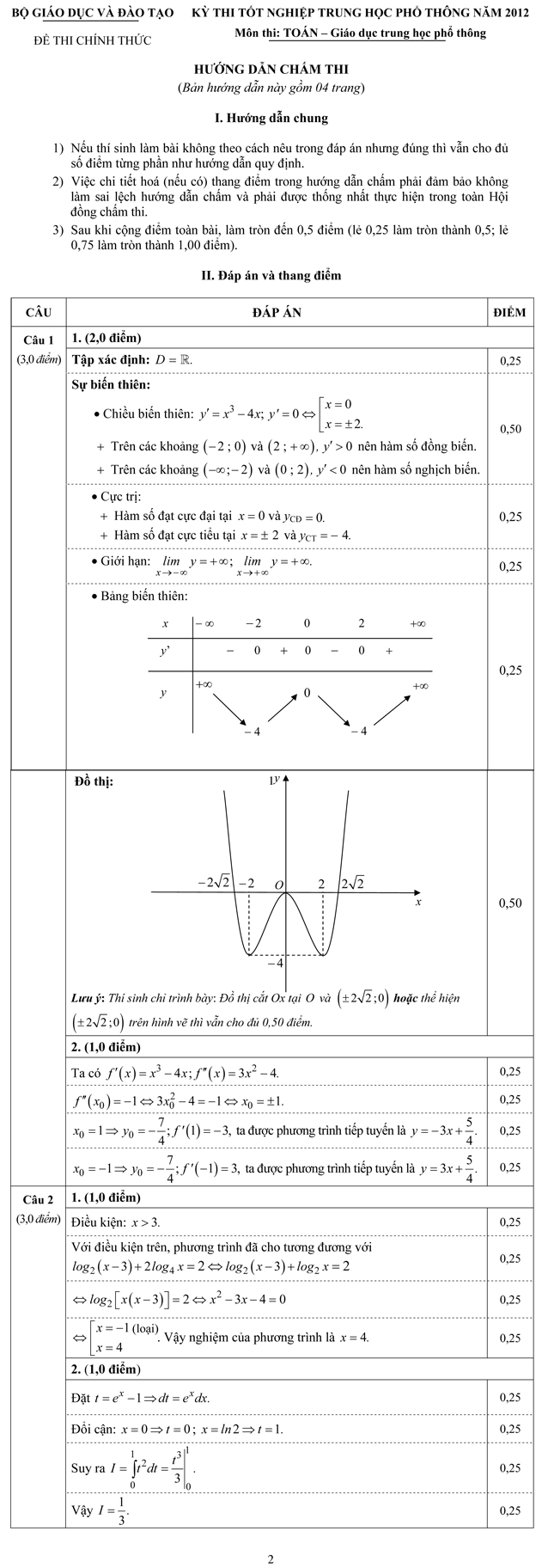 Tìm hiểu thêm »Bản hướng dẫn chấm thi tốt nghiệp THPT môn Toán hệ Giáo dục trung học phổ thông năm 2012