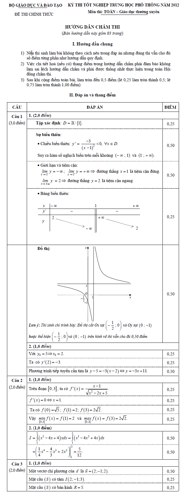 Tìm hiểu thêm »Bản hướng dẫn chấm thi tốt nghiệp THPT môn Toán dành cho hệ Giáo dục thường xuyên năm học 2012