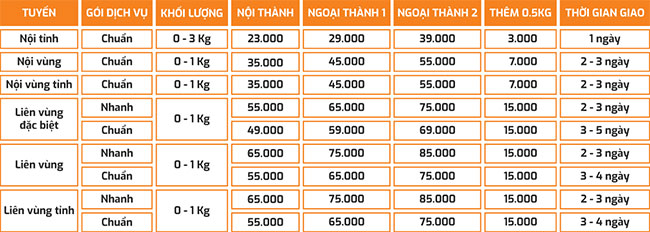 Bảng giá cước Giao hàng nhanh trong nước Biểu phí Giao hàng nhanh mới nhất