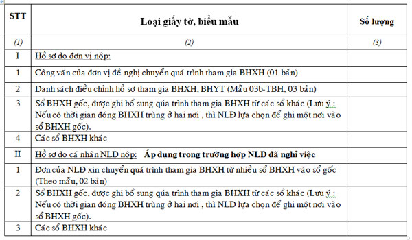 Loại hồ sơ: Chuyển quá trình tham gia BHXH từ nhiều sổ về sổ gốc