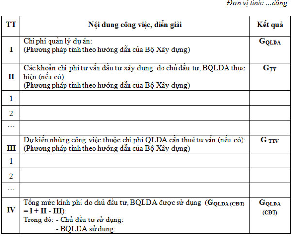 BẢNG TÍNH KINH PHÍ QUẢN LÝ DỰ ÁN