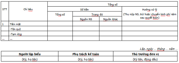 Bảng tổng hợp kinh phí chưa quyết toán