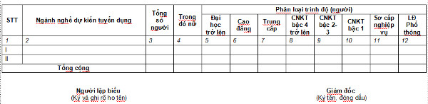BÁO CÁO NHU CẦU TUYỂN MỚI LAO ĐỘNG TRONG NĂM ……….