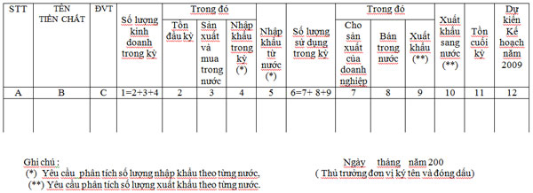 Báo cáo thực hiện kinh doanh, sử dụng những tiền chất trong lĩnh vực công nghiệp