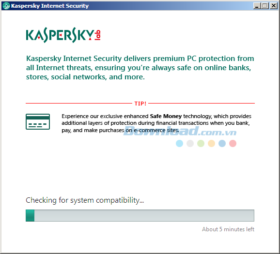 Bước 2: Tiến trình cài đặt Kaspersky bắt đầu. Vì công cụ này chiếm dung lượng gần 200 MB nên quá trình cài đặt cũng diễn ra khá lâu.