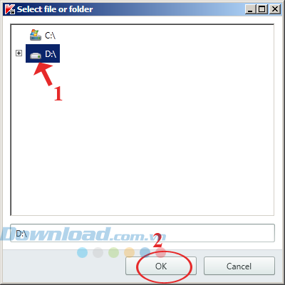 Bước 3: Cửa sổ Select file or folder xuất hiện, nhấn chọn ổ đĩa cần quét và nhấn OK.