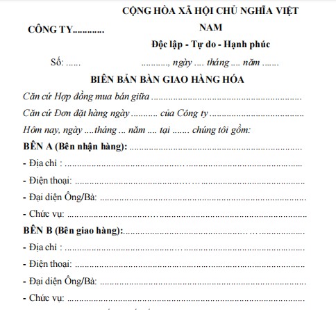 BIÊN BẢN BÀN GIAO HÀNG HÓA