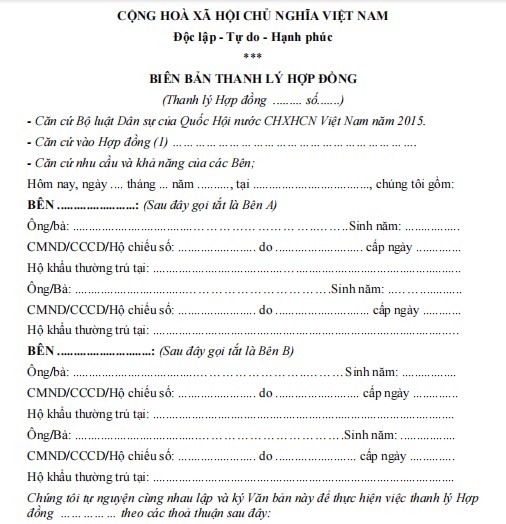 BIÊN BẢN THANH LÝ HỢP ĐỒNG