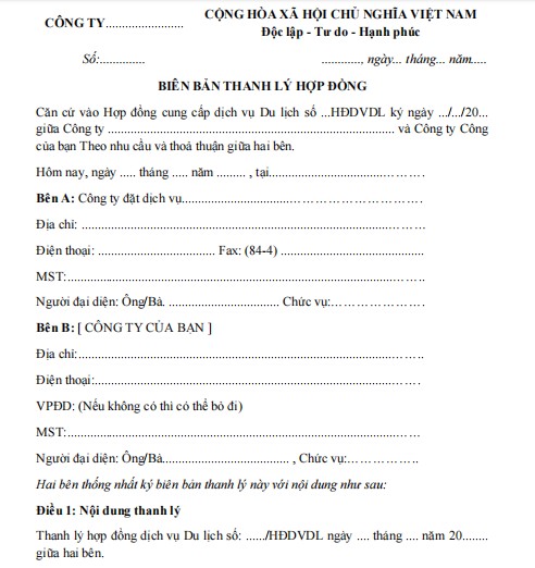 Biên bản thanh lý hợp đồng du lịch Mẫu biên bản nghiệm thu dịch vụ du lịch