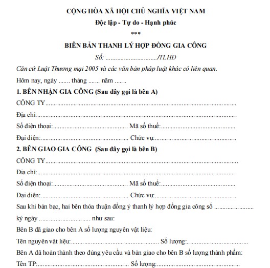 BIÊN BẢN THANH LÝ HỢP ĐỒNG GIA CÔNG