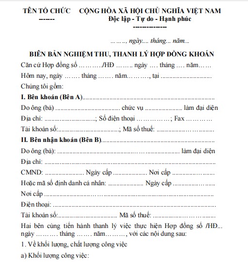 BIÊN BẢN NGHIỆM THU, THANH LÝ HỢP ĐỒNG KHOÁN