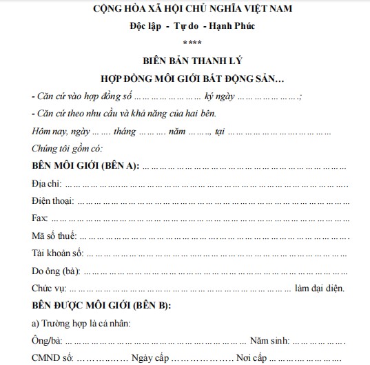 1. Mẫu biên bản thanh lý hợp đồng môi giới BĐS