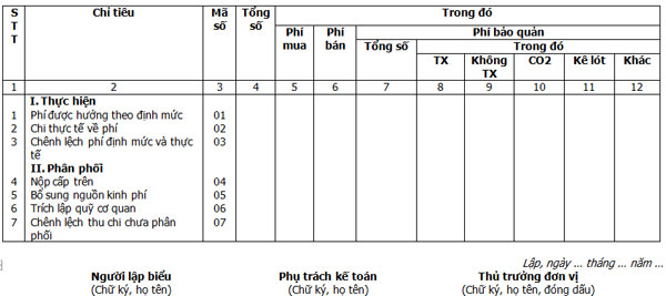 Biểu mẫu Báo cáo thu chi về phí hàng dự trữ